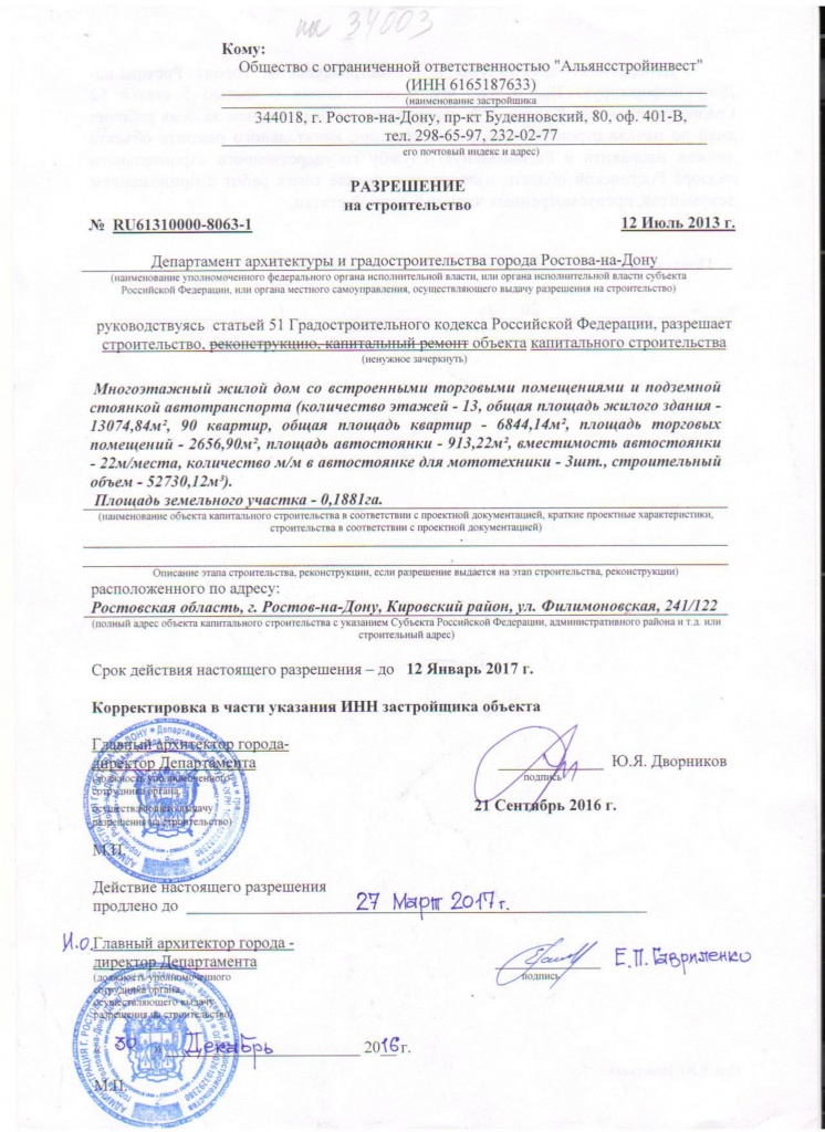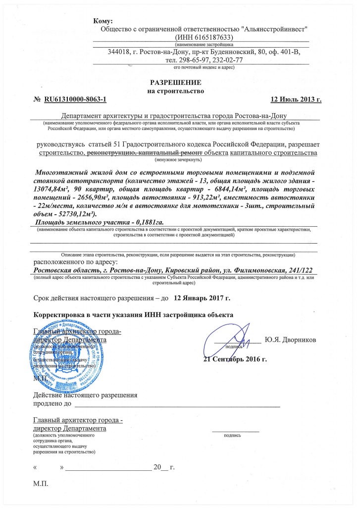 Застройщик ООО «Альянсстройинвест»