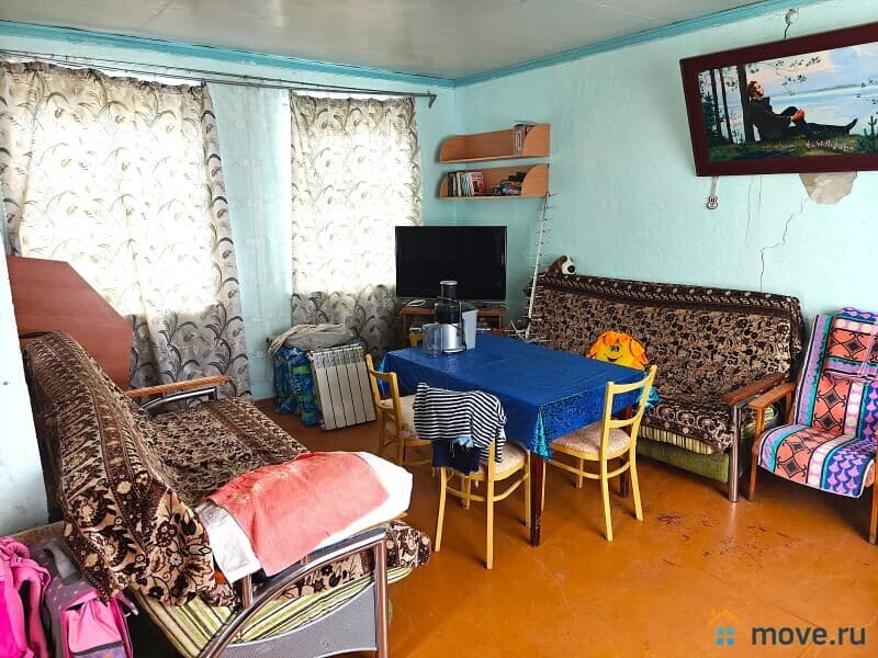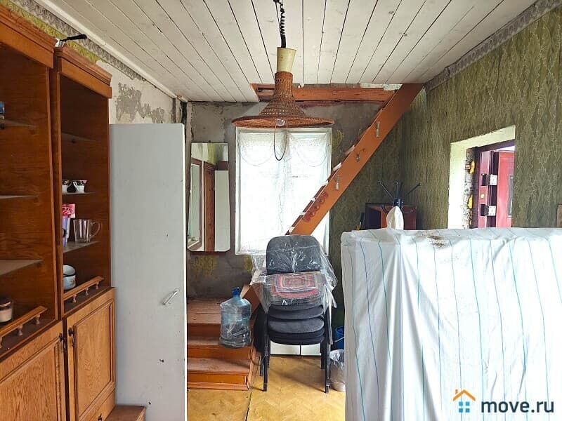 На первом этаже – кухня и большая комната 20 м2. В кухне есть дачный умывальник, в который вода подается из бочки на 2-м этаже. На втором этаже две комнаты-спальни и небольшая веранда. Есть подвал, сухой, глубокий, 5 м2. Внутренняя отделка требует ремонта.