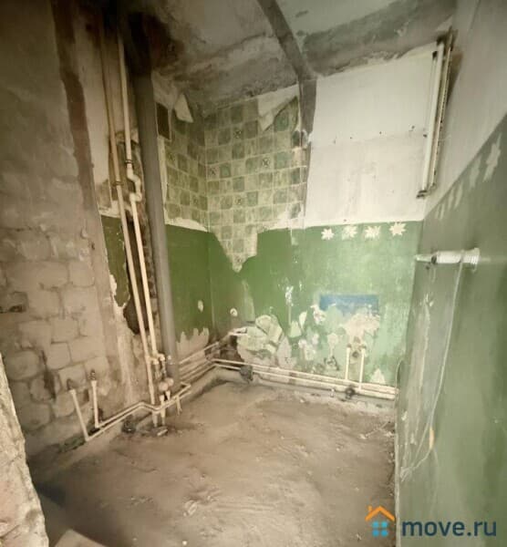 В квартире есть все необходимые коммуникации, включая центральное отопление от ТЭЦ и совмещённый санузел. Выполнена стяжка пола, однако жильё требует капитального ремонта, что даёт возможность оформить пространство по своему вкусу.