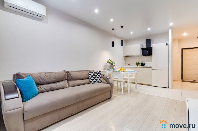 Отдельная спальня и зал, совмещенный с кухонной зоной..